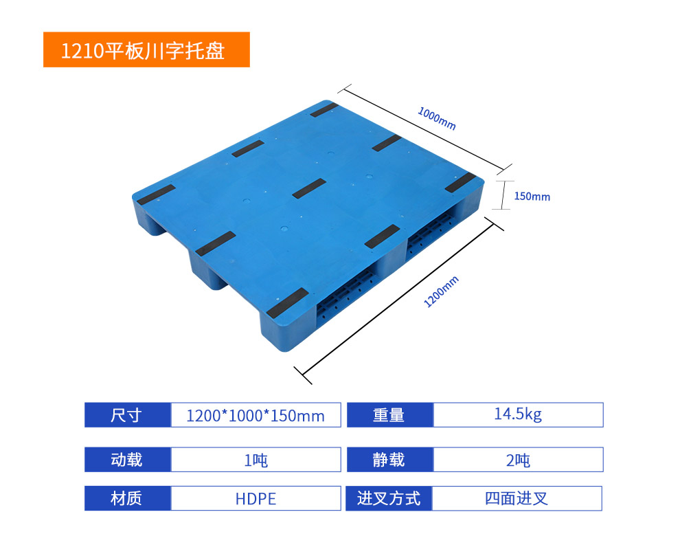 产品名称:1210平板川字塑料托盘